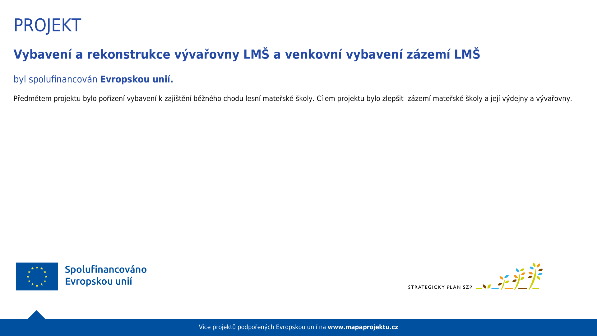 Díky podpoře Nad Orlicí o.p.s. a dotaci SZIF jsme zakoupili velký nůžkový stan, který slouží dětem jako úkryt před deštěm i sluncem v zázemí školy na Bědovicích. Dále proběhla v naší lesokruhové školní vývařovně rekonstrukce a bylo zakoupeno nové vybavení. Kromě nové výmalby a obložení kuchyně došlo i k výměně vstupních dveří a okna, díky čemuž očekáváme v zimním období značné energetické úspory. Také bylo zakoupeno nerezové vybavení a profesionální velkokapacitní plynový sporák.